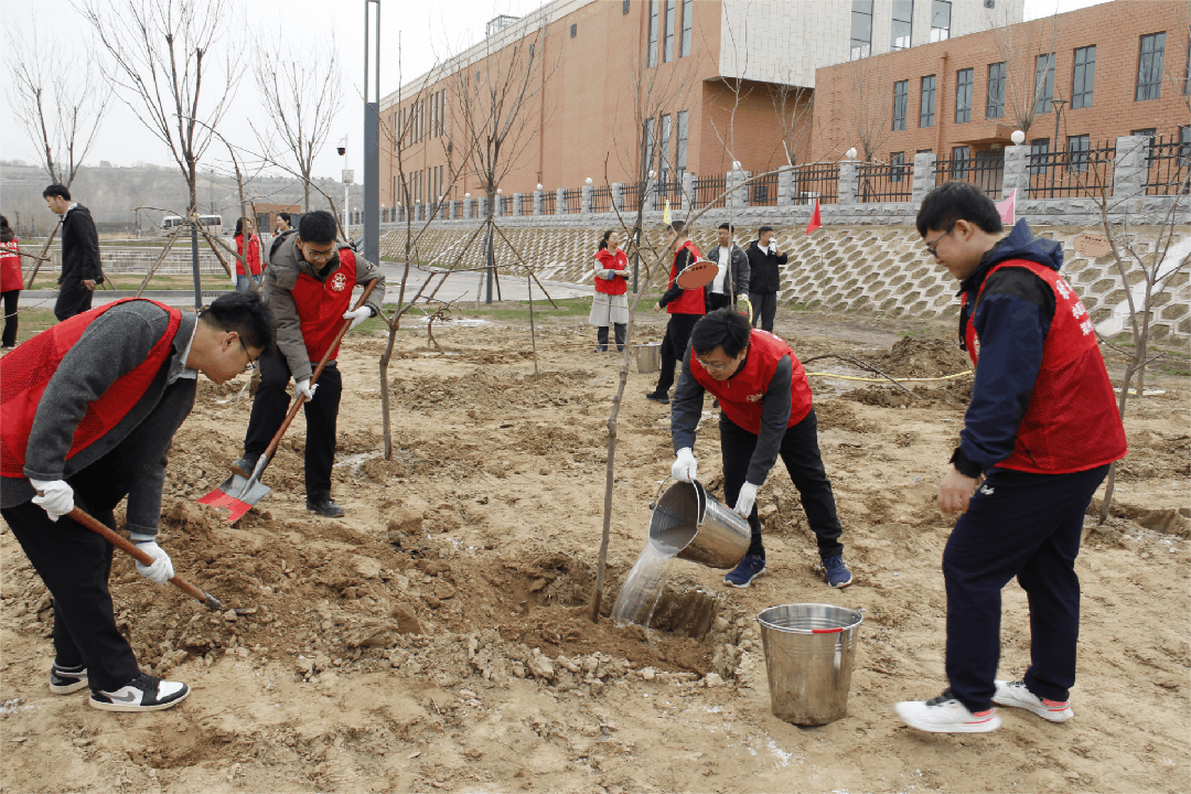 活動現(xiàn)場,40余名黨員揮鍬鏟土、扶苗培根、提水澆灌,合力種下百余棵“黨員先鋒樹”,從開挖樹坑到搬運(yùn)苗木,從培土固根到引水澆灌,現(xiàn)場繁忙而有序,氣氛活潑而熱烈,大家以樹為筆、以汗為墨,寫下“城發(fā)人”的綠色誓言:種一片林,守一脈水,護(hù)一城人。種植完成后,大家積極懸掛“樹木認(rèn)養(yǎng)牌”,標(biāo)注樹木類別和認(rèn)養(yǎng)人姓名,讓每一棵樹都成為黃河流域高質(zhì)量發(fā)展的“綠色坐標(biāo)”,讓每名黨員都成為綠色發(fā)展的“排頭兵”!