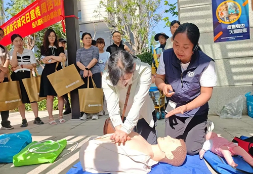 在互動體驗環(huán)節(jié),工作人員展示結繩演練并指導實操,保障群眾掌握基本結繩逃生技能?,F(xiàn)場還設置了仿真人體模型,醫(yī)護人員指導群眾進行心肺復蘇操作練習,同時為群眾演示海姆立克急救法操作流程。