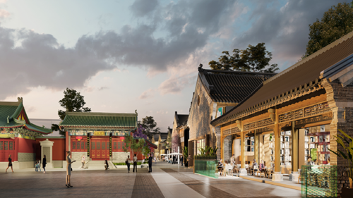 項目圍繞其毗鄰的文廟、城墻等文化遺存,處于較為幽靜的環(huán)境,整體業(yè)態(tài)定位偏于文化和雅致;項目以中原傳統(tǒng)建筑為設計基礎,采用明清時期建筑風格,將文廟、城垣與商業(yè)街區(qū)融為一體,增加街區(qū)的文化品位與底蘊。