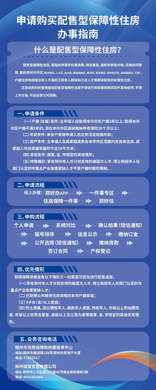 如在申請過程中有任何疑問,可以撥打鄭州市住房保障和房屋租賃中心咨詢電話:0371-67883316、0371-67883317;鄭州市城發(fā)安居有限公司咨詢電話:4001261666。咨詢時間為配售項(xiàng)目申請期間:8:30至20:00,其他時間(工作日):8:30至18:00。