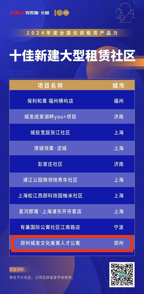 近日,克而瑞2024年度中國住房租賃產(chǎn)品力榜單揭曉,鄭州城發(fā)文化美寓人才公寓憑借卓越的綜合產(chǎn)品力,榮獲“十佳新建大型租賃社區(qū)”稱號。這一榮譽(yù)不僅是對鄭州城發(fā)美寓人才公寓項(xiàng)目的高度認(rèn)可,更是對其在住房租賃領(lǐng)域創(chuàng)新實(shí)踐的肯定。