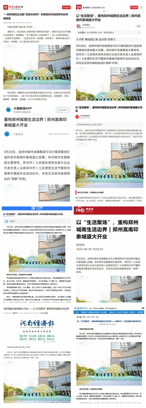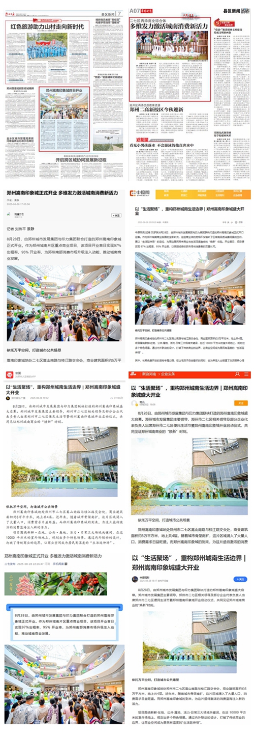 8月28日,鄭州城南商業(yè)格局迎來重大變革,由鄭州城市發(fā)展集團與印力集團攜手打造的鄭州嵩南印象城盛大啟幕,開業(yè)首日客流達12.6萬人次,迅速成為全城矚目的焦點。這一盛事引發(fā)了各大媒體的廣泛關注,河南日報客戶端、頂端新聞、大象新聞、大河報、大河網、映象網、河南經濟報、鄭州日報、鄭州晚報、鄭州廣播電視臺等媒體紛紛聚焦,對其開業(yè)進行了全方位、多角度的報道。