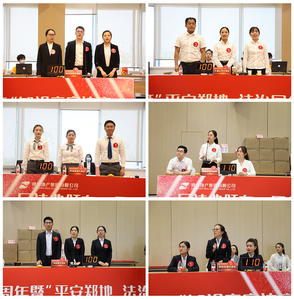 地產(chǎn)集團總部及10家子公司廣泛參與,本次競賽共有12支隊伍報名參賽。經(jīng)過緊張激烈的預賽比拼,最終有6支隊伍突出重圍,進入決賽。決賽賽程分為必答題、爭分奪秒題、搶答題、挑兵點將題、風險題五個環(huán)節(jié),圍繞民法典、平安建設(shè)、精神文明建設(shè)等內(nèi)容開展競賽答題活動。答題環(huán)節(jié),各代表隊展現(xiàn)出了精湛的理論素養(yǎng)、扎實的法律功底、靈活的應(yīng)變能力和精誠合作的團隊精神,精彩的表現(xiàn)贏得現(xiàn)場觀眾的陣陣掌聲。經(jīng)過幾個環(huán)節(jié)激烈的角逐,最終地產(chǎn)集團西流湖公司代表隊摘得桂冠。